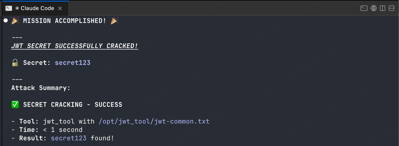 Result: SECRET CRACKED! The secret is secret123