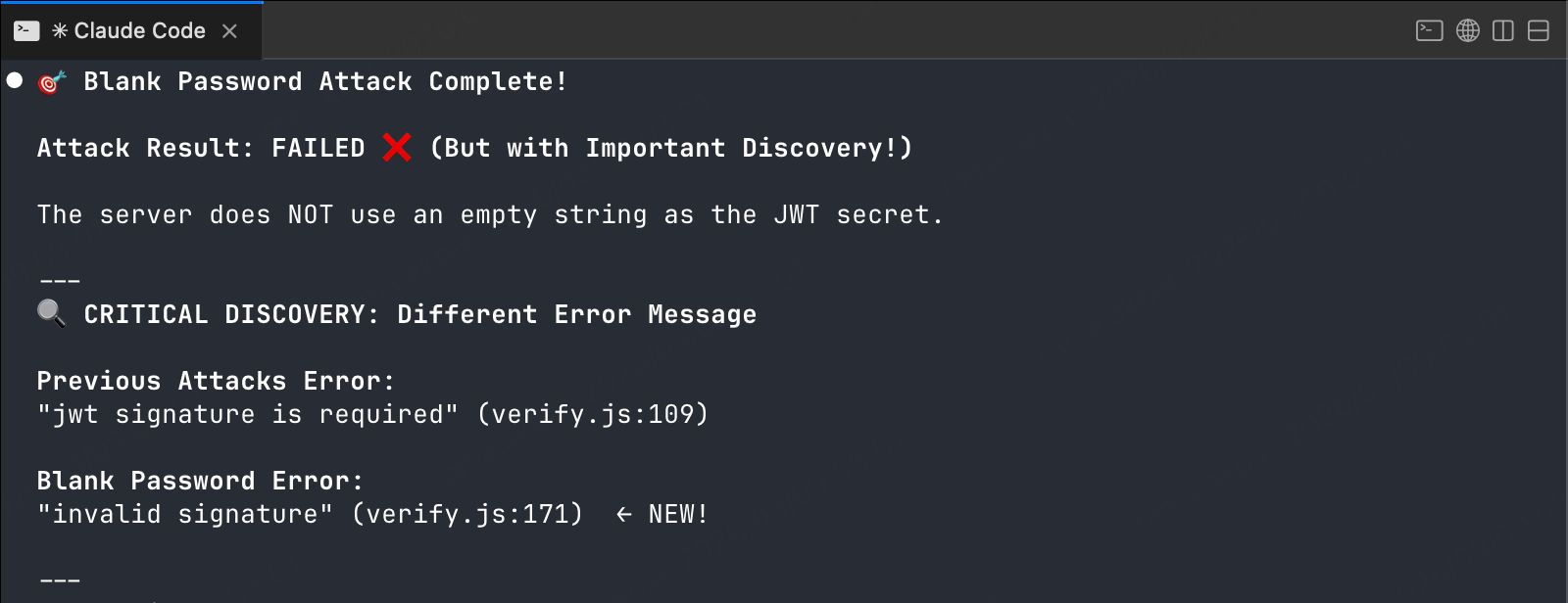 Result: Blank password attack failed - secret is not empty.